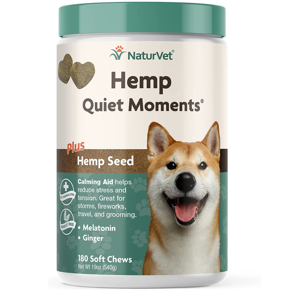 NaturVet Quiet Moments Calming Aid provides your canine companion with the comfort they need. This is a high-quality supplement that provides support to relieve dog anxiety and separation anxiety, bringing peace of mind to both you and your dog. The soft chews contains melatonin, ginger, L-Tryptophan, and thiamin so that nervousness won't stand in your dog's way ever again. Whether it's separation anxiety, grooming, thunderstorms or car rides, these CBD treats are geared for anxiety relief.