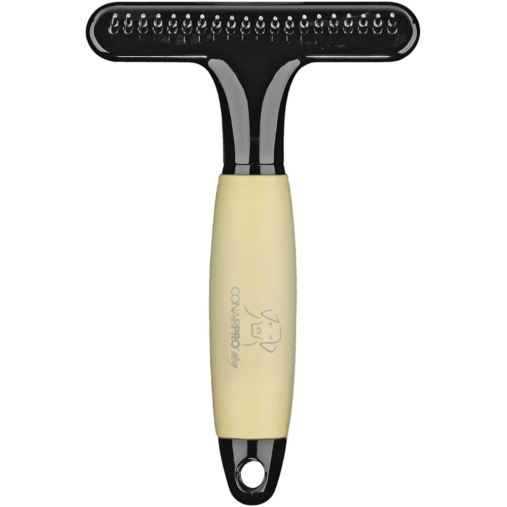 Regarding the best rake, the CONAIRPRO 3/4" Medium-Tooth Undercoat Rake will become your and your furry friend's favorite. Though this brush has stainless steel pins, it still doesn't cause any harm to the skin.
