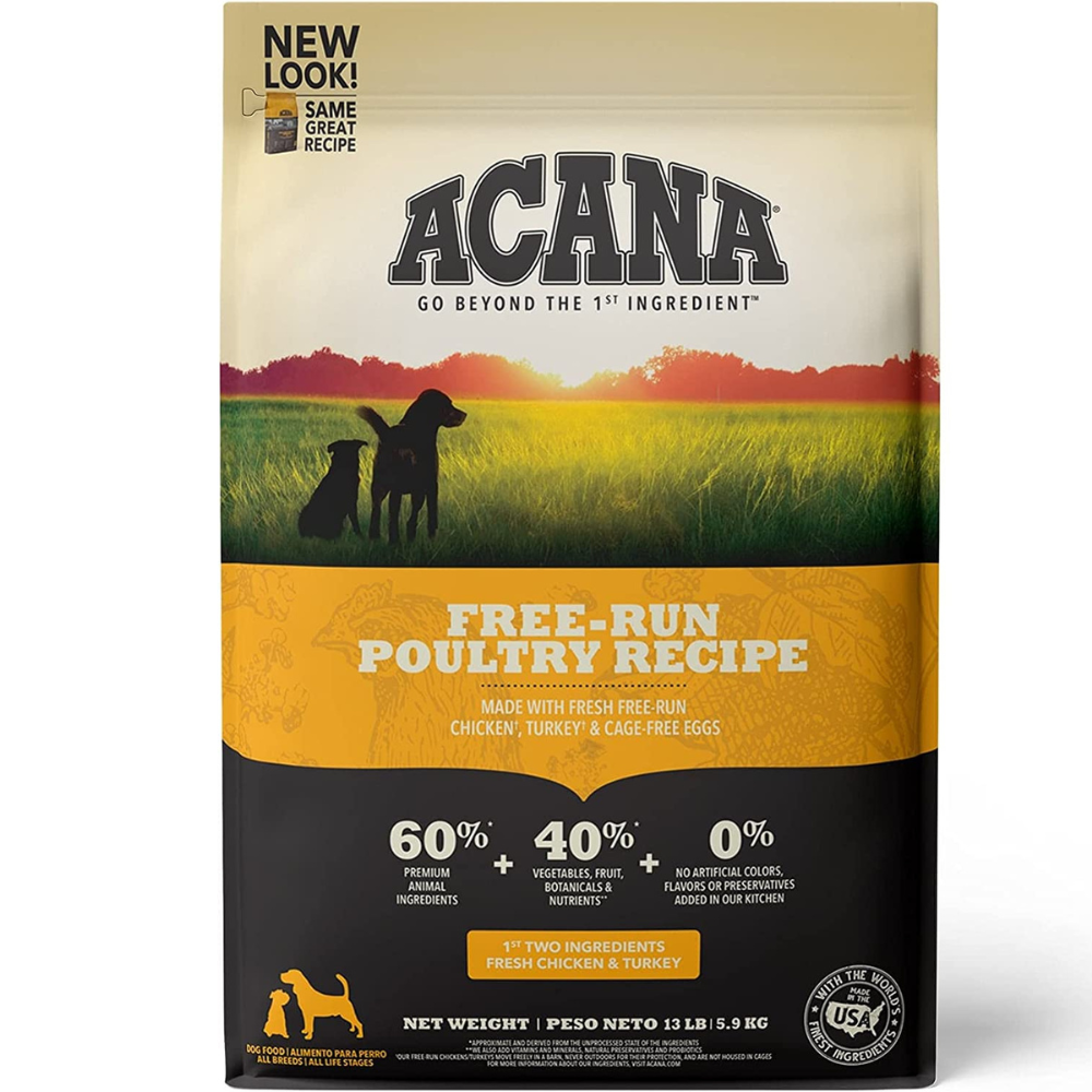 Furthermore, it contains no artificial colors or preservatives, making it a nutritious food choice for pups. Feed your pup the food nature intended, and choose ACANA's Free Run Poultry Recipe!