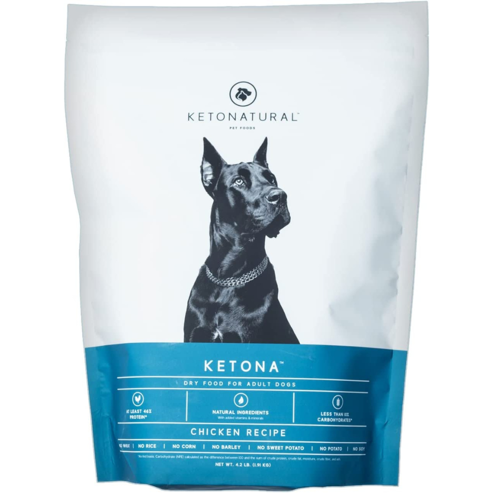 Last but not least, our Ketona Chicken Recipe Adult Dry Dog Food is a revolutionary product that was designed to bring the benefits of a raw diet to dogs without requiring all the prep and cost. It's made in the USA with natural ingredients, no grain or fillers, and contains more than 46% protein, so your pup will stay energized and healthy!