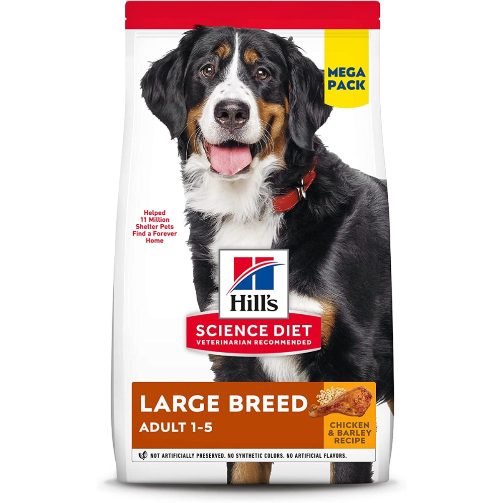 This is one of the best overall dog food for complete nutrition for large breed adult dogs. Made with real farm-raised chicken as the first ingredient plus high quality animal proteins. Plus, it contains prebiotics and fibers that encourage healthy digestion and provides antioxidants to support a strong immune system and contains absolutely zero artificial preservatives, flavors or fillers.