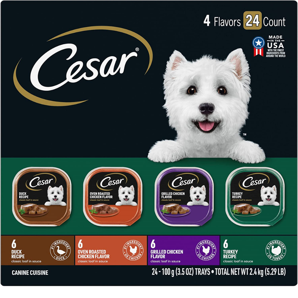 Each tray of CESAR Wet Dog Food is crafted without grains and includes only the finest ingredients from the US. It comes complete and balanced with vitamins and minerals. Plus, it's the ideal meal for small dogs.