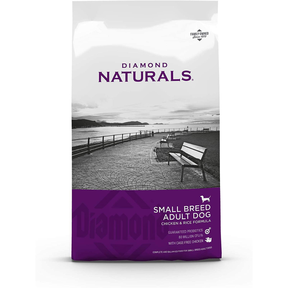 Diamond Naturals dry dog food is the best overall dog food. This small kibble food is easy to chew for small dogs, keeping their teeth clean, and reducing plaque. It contains 27% protein and 16% fat, providing Yorkies with all essential nutrients for a healthy and active lifestyle.