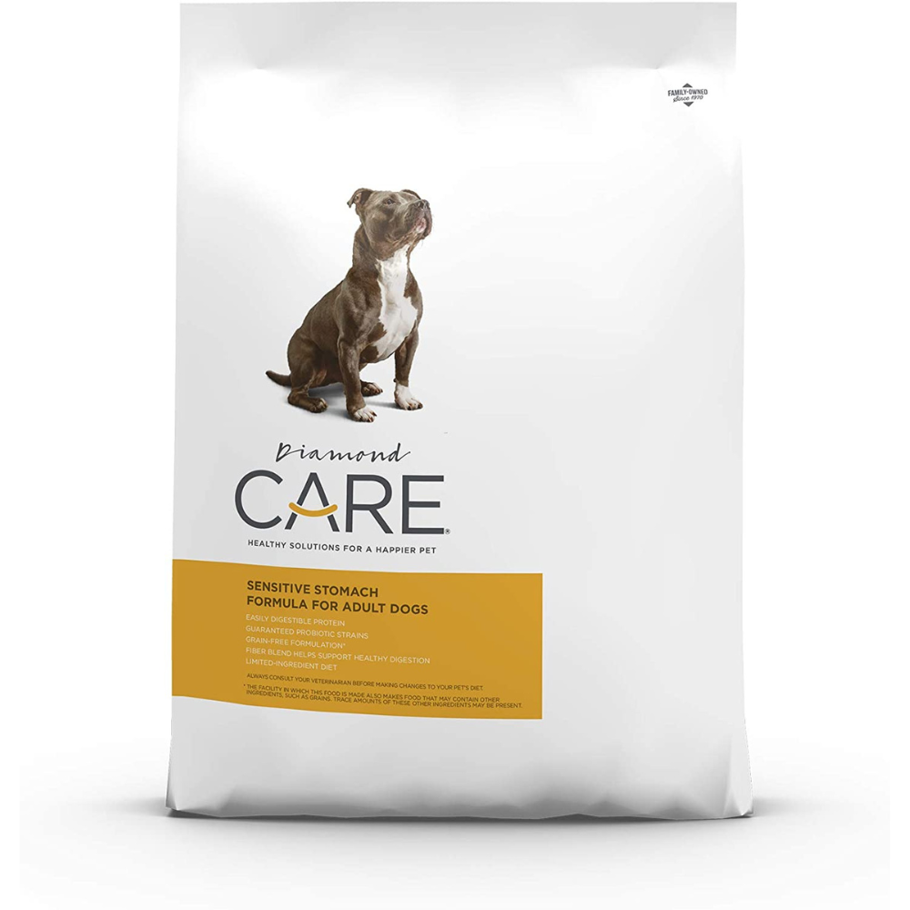 Diamond CARE is great for dogs with sensitive stomachs and digestive issues as it contains limited ingredients, antioxidants, and Omega fatty acids for healthy skin.