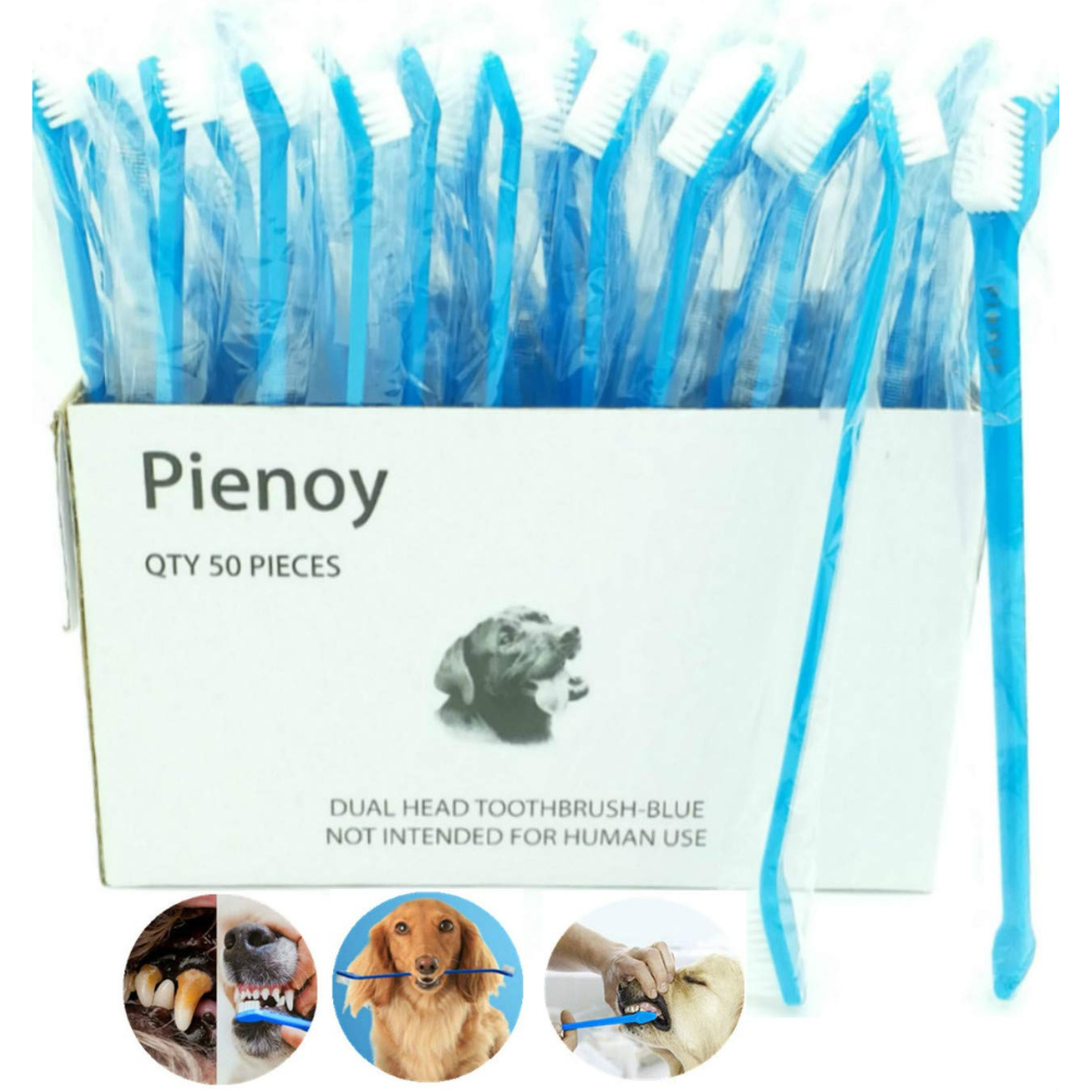 These dog toothbrushes come in a pack of 50 for a great price. They are an excellent example of how buying in bulk can result in significant savings. It means you'll have dog toothbrushes for at least three to four years at a budget-friendly price. These toothbrushes come with two different sizes of heads, so they can be used with dogs of all sizes.
