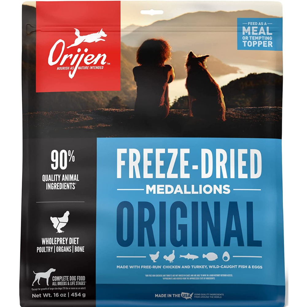 The meal package comes in small nuggets, which is perfect as a dog food topper. Its raw food passes through the best freeze drying process, making it one of the best frozen dog foods on the market. Moreover, every flavor of ORIJEN dog food is grain-free with no artificial preservatives.