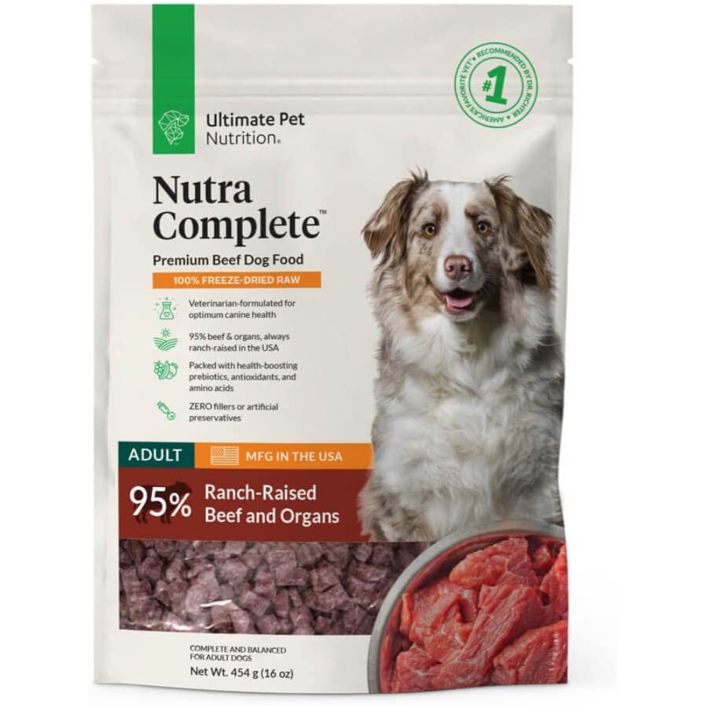 This freeze dried dog food is a great choice because of its antioxidants, prebiotics, and amino acid content. Unlike other freeze dried recipes, it does not depend on raw meat for nutrients. Nutra's formula recipe has multiple prebiotics that helps enhance your canine's metabolism, giving them internal health and safety. This dog food helps repair your pup's tissues and damaged lesions faster because of its amino acid content.
